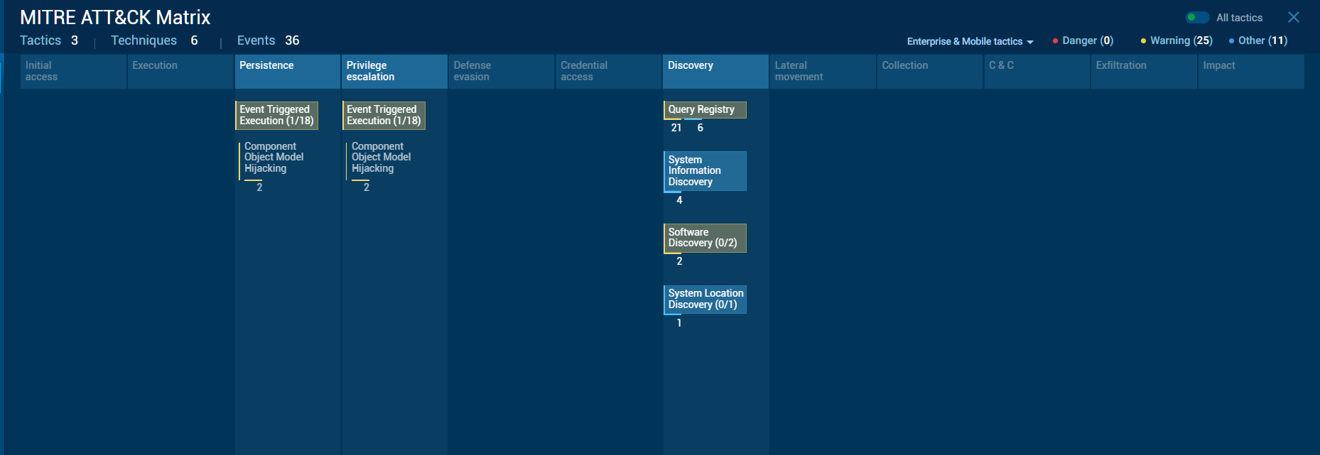No dangerous tactics such as command-and-control, data exfiltration, or impact were observed.